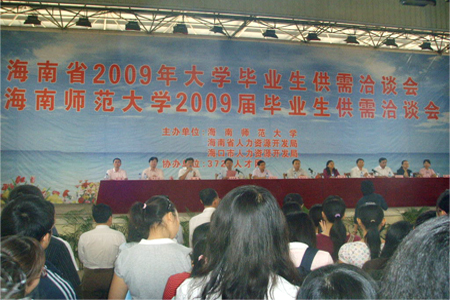 4月11日早上8點(diǎn)半,海南師范大學(xué)主辦,3721人才網(wǎng)協(xié)辦的海南師范大學(xué)2009屆畢業(yè)生供需洽談會(huì)準(zhǔn)時(shí)開幕。共青團(tuán)海南省委孫喆書記、海南省人力資源開發(fā)局林志向局長、?谑腥肆Y源開發(fā)局黃維新副局長等省市部門領(lǐng)導(dǎo)、海南師范大學(xué)韓長日校長、陳封椿副書記及我司總經(jīng)理李超先生等嘉賓在主席臺(tái)前就座。